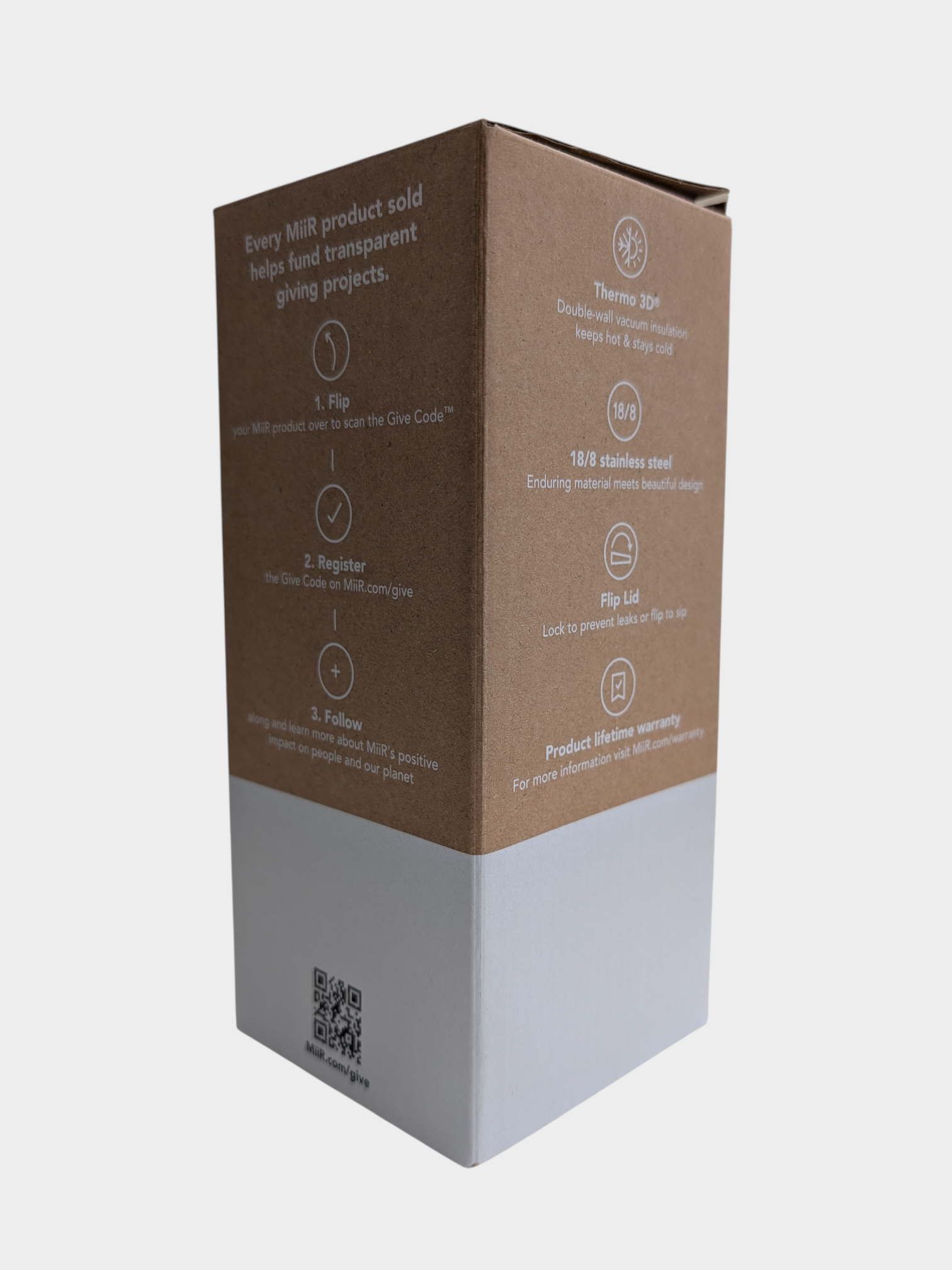 "Every MiiR product includes a Give Code, a powerful tool that connects you to our giving. Become part of the Product to Project™ movement by registering your Give Code."